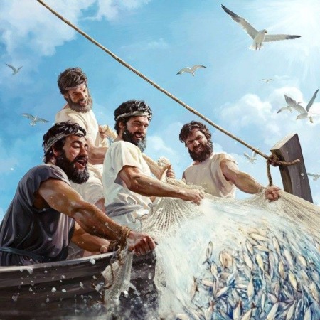 Він же сказав їм: «Закиньте невода праворуч човна – і знайдете». Вони закинули, і вже не могли витягти його від великої кількості риби.